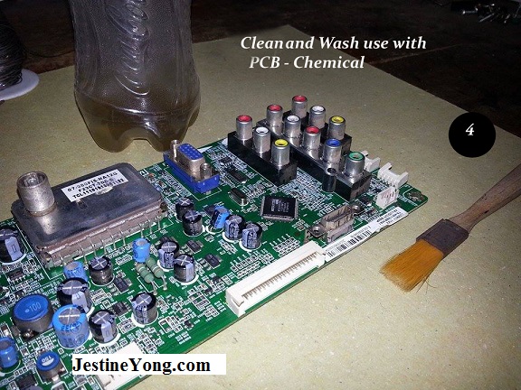 On the other hand, is almost imposible in my country to get PCB chemical, therefore we use to scrub the PCB with liquid detergent and rinse it with abundant running water. Later it's dried with a sunbath.