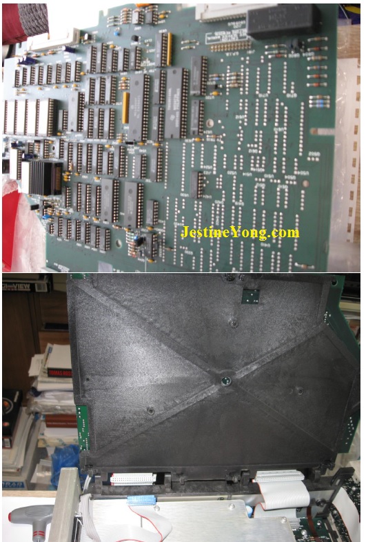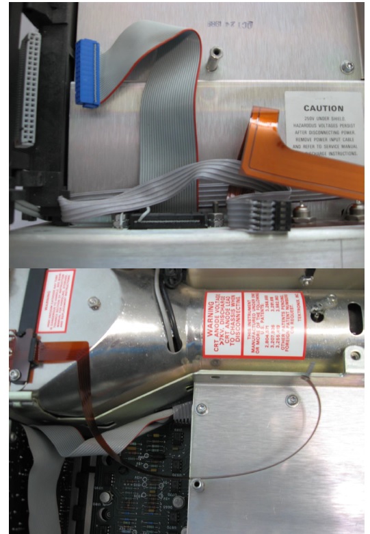 Next 2 photos show the first cables that connect onto System Processor Board A12 and have to be disconnected to be able to open Boards A12 and A11 without damaging those cables.