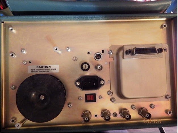 This is a view of the back of my scope. My scope is standing on its face, the knobs and CRT being protected by the face cover.