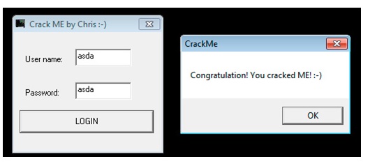 As you can see, the left CrackMe.exe have a red 74 and in the right CrackMe.exe have a red 90. The right CrackMe.exe is the cracked.