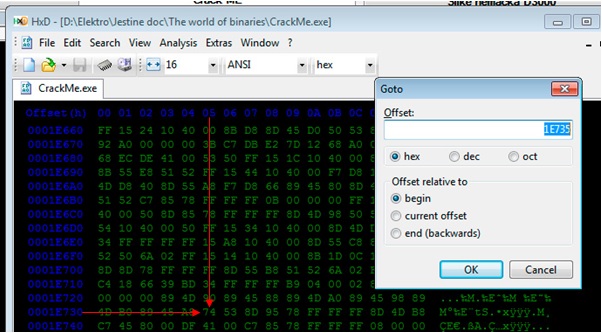Now open HxD hex editor or any other hex editor with the capability of content editing and changing option. And write the address 1E735 and press OK.