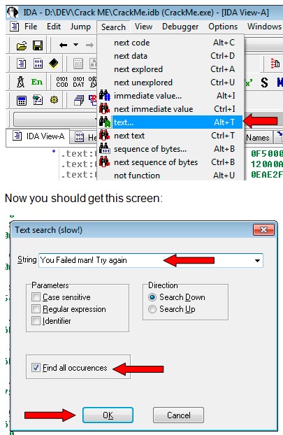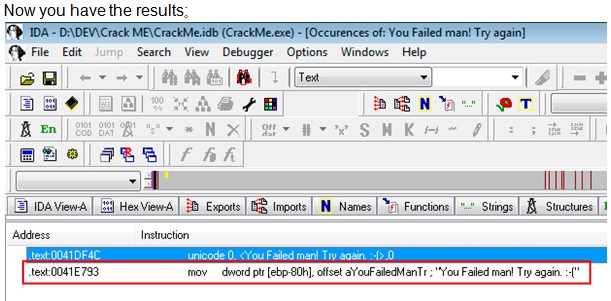 Write in the “String” field the text “You Failed man! Try again”, click on “Find all occurrences” and press “OK”.