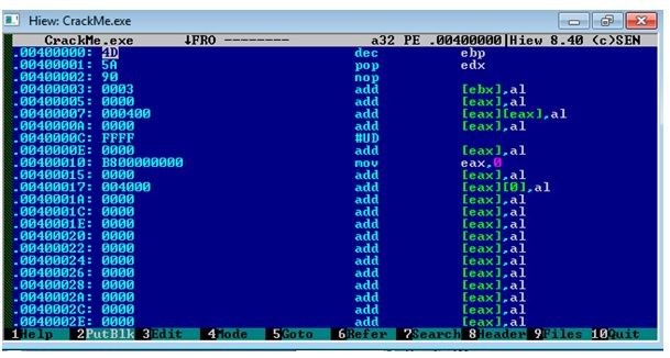 Now is the time to open the program HIEW Hackers Eye View. You can download it from here: http://www.hiew.ru/