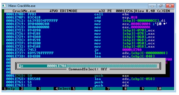 Press F2 to open the windows where you can input the new instruction and tell the CPU to resign the JZ worker. Here is the picture it should be on your screen after pressing F2.