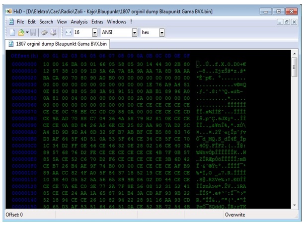 HxD Hexeditor is a simple but powerful hex editor. I use it to quick analyze the targeted software, reading the header of the software or maybe to change some bytes if it is needed. With this peace software it is possible to write the new code to the bin file of the eeprom of the car radio, which is code protected.