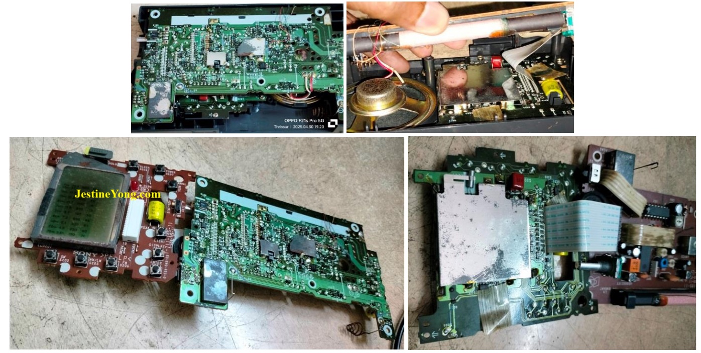 The replaced decoder did not have a holding stand, because of which I inserted the three pins deep enough and soldered for holding it in place. Since there was an inner ring on the cabinet for the knob to rotate without wobbling, there won’t be any strain on the decoder and it would serve the purpose. The dull display could not be set right as that required removing the LCD display and replacing the diffuser and polarizer films, which were not available in the market. Even though there was a light switch, the display was not glowing like in any LCD screens because of the sheets. But if we have a proper light in the room, it was possible to read the dial. Anyhow, that was required only to view the tuning frequencies and once stations are selected and stored in the memories, the display did not matter much. There was a printed guidance of frequencies on the dial and an LCD line was jumping on to the correct line as and when we tuned to indicate where we were and that was prominent enough. It had a clock and sleep mode too!