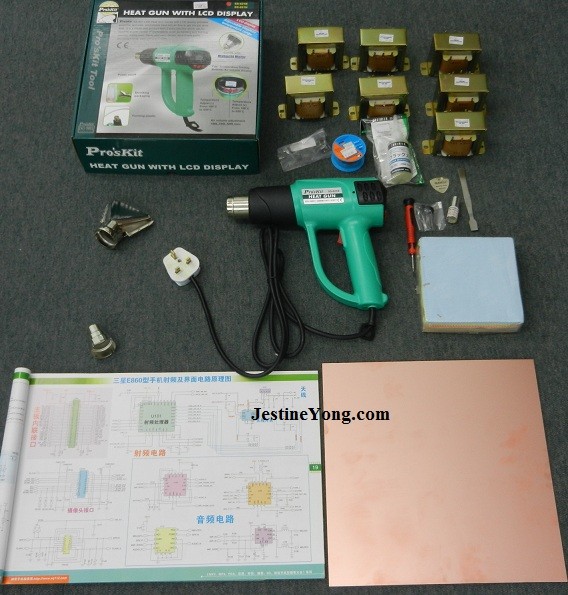 Today I went to Pasar Road again (electronics center) to buy some stuff for my workshop and repair class to use. I bought 7 pieces of 24 volt 50 VA linear transformer, 5 pieces of UC3845, 3 pieces of 270 volt Varistor, a Pro’s kit 1000watt temperature adjustable heat gun, 0.5mm solder lead, 0.4mm BGA solder balls, flux, metal plate, a piece of square board and cell phone repair diagram.