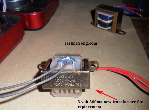 Since the transformer already burnt, I left no choice other than to replace with a new linear transformer with the specification of 3 volt output 300 Milliamp (ma).