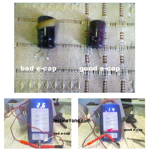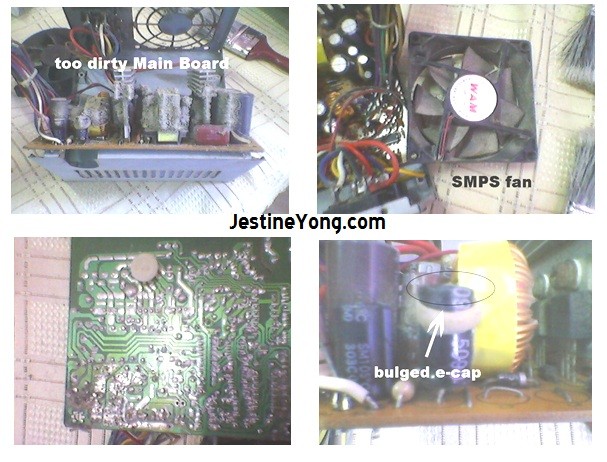 The SMPS had one bulged e-cap (470µF/16v), it was tested as bad with my Blue ESR Meter I bought from Jestine Yong.