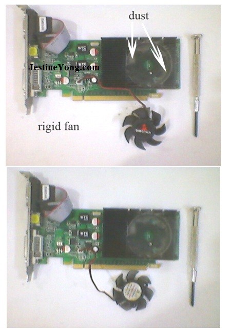 The fan and radiator were cleaned and fan was lubricated too. When the card was inserted again into PCI Xpress slot in the Motherboard and switched ON, the Operating System loaded perfectly and no more hanging problem and I confess even until today everything was working fine.