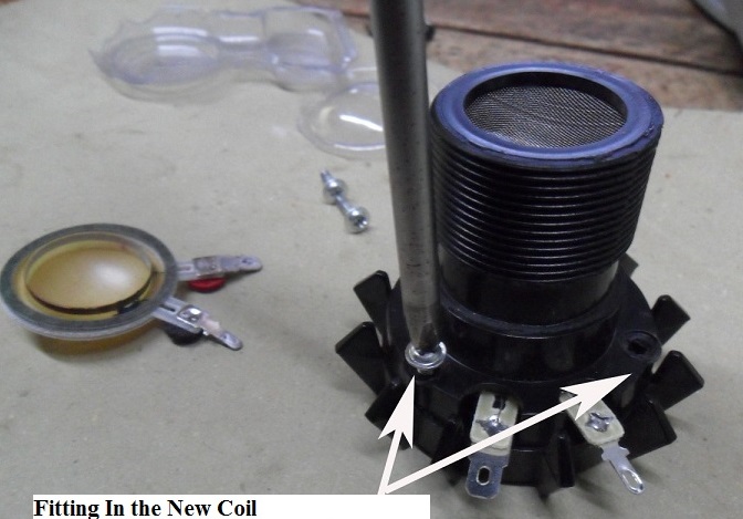 It is easy to fit in the new coil. Just unscrew the unit, put in the new coil and solder the two wires and you are done. The new voice coil resistance is 6 Ohm.
