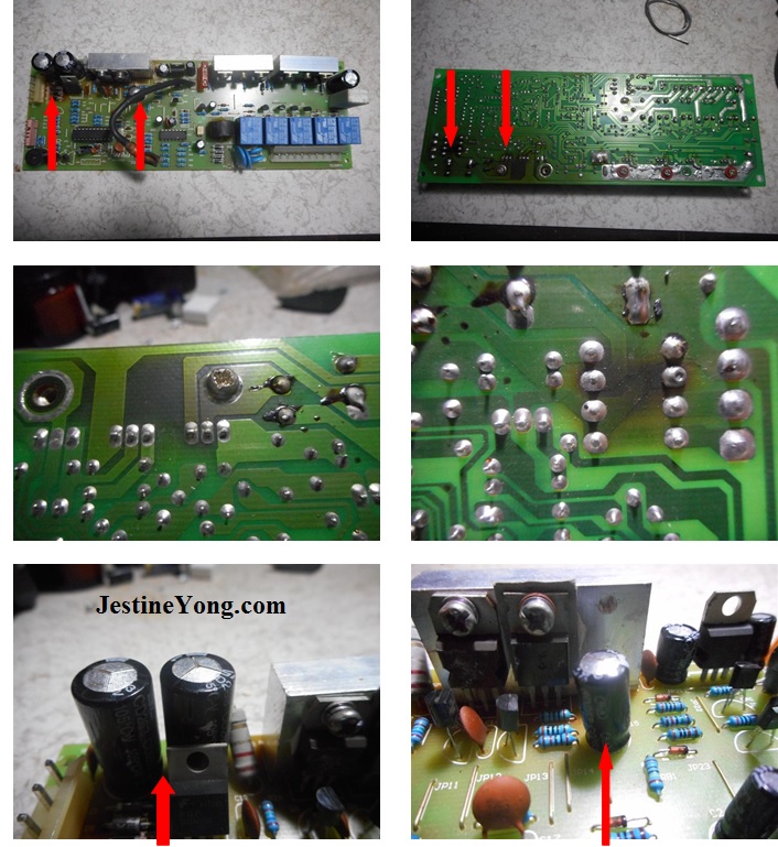 As you can see there were three bulged e-caps and a lot of dry solder joints and the PCB was black in some places indicates heating problem in the components.