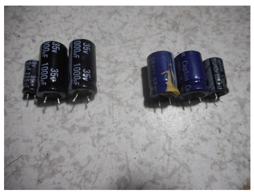 The three e-caps (2 x 1000µF/35v and 1 x 220 µ F/35v) were replaced.