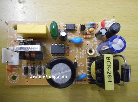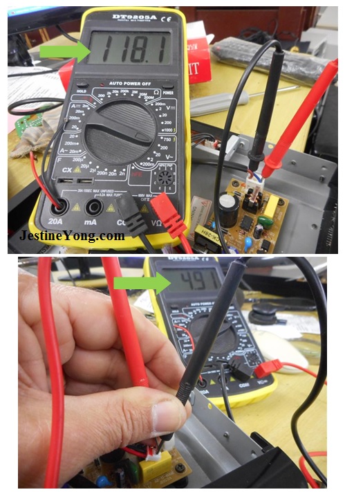 As you can see in the photos above there was AC mains (110 volts in my country) and there was voltage-out in the Power Supply Unit (5 volts in this case).