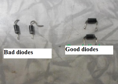The diodes used for substitute the bad ones were 1N4007 (recovered from another PCB).