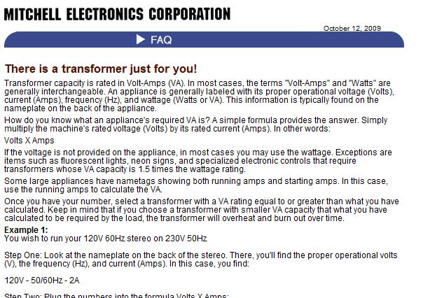 Ever wonder what is Volt/Ampere (VA) all about? Please click on the photo for some simple calculation to find out the right transformer for your equipment.