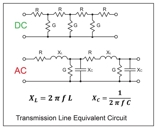The losses in the transmission lines increase with the frequency because of the inductance and capacitances of the lines. The lower the frequency, the better! DC is even better! The following figure shows how a transmission line appears to DC, then to AC. In AC the losses are function of the frequency as we can see in the formulas.